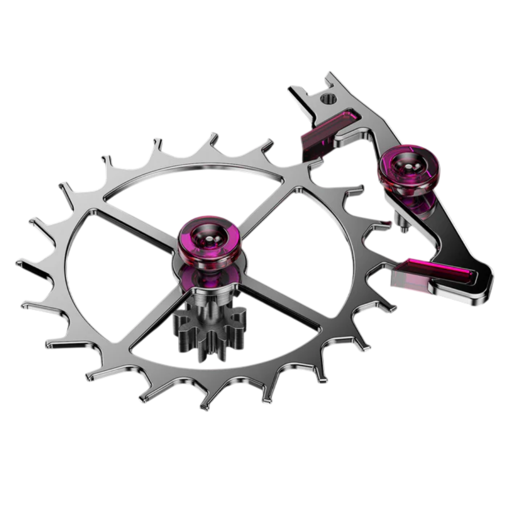 Interface between the gear train and the regulating organ, the escapement is the place where energy and chronometry intersect in a complex interaction. The escapement is an energy-demanding system, it alone consumes more than half of the barrels’ energy. It is the friction of the anchor pallets on the anchor which, despite their lubrication, dissipates a good part of this energy.