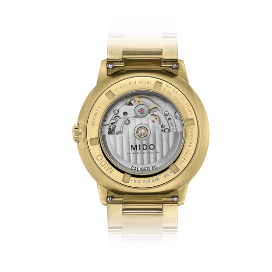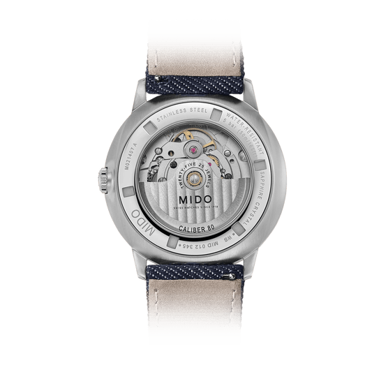 In its ongoing commitment to excellence, MIDO has incorporated the revolutionary Nivachron™ balance spring into this movement. This innovative titanium-based metal alloy reduces magnetic interference and is remarkably robust against impacts and the effects of time.