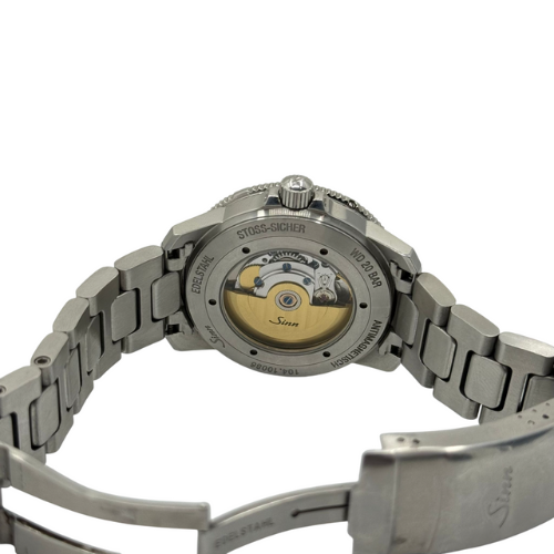 The 104 St Sa A is a classic pilot’s watch in the SINN tradition. The dial is clearly structured, with its three hands providing optimum readability of the time, date and day of the week down to the second. The pilot’s bezel with minute ratcheting can be rotated on both sides and is securely attached to the case. It has a luminous triangle as key mark at the 12 o’clock position. The instrument watch has a polished stainless steel case and a crystal made of sapphire crystal which is also used for the transparent back. The transparent back allows the filigree work of the mechanical movement to be admired in all its intricacy. The 104 St Sa A is low pressure resistant and can withstand pressures of up to 20 bar.