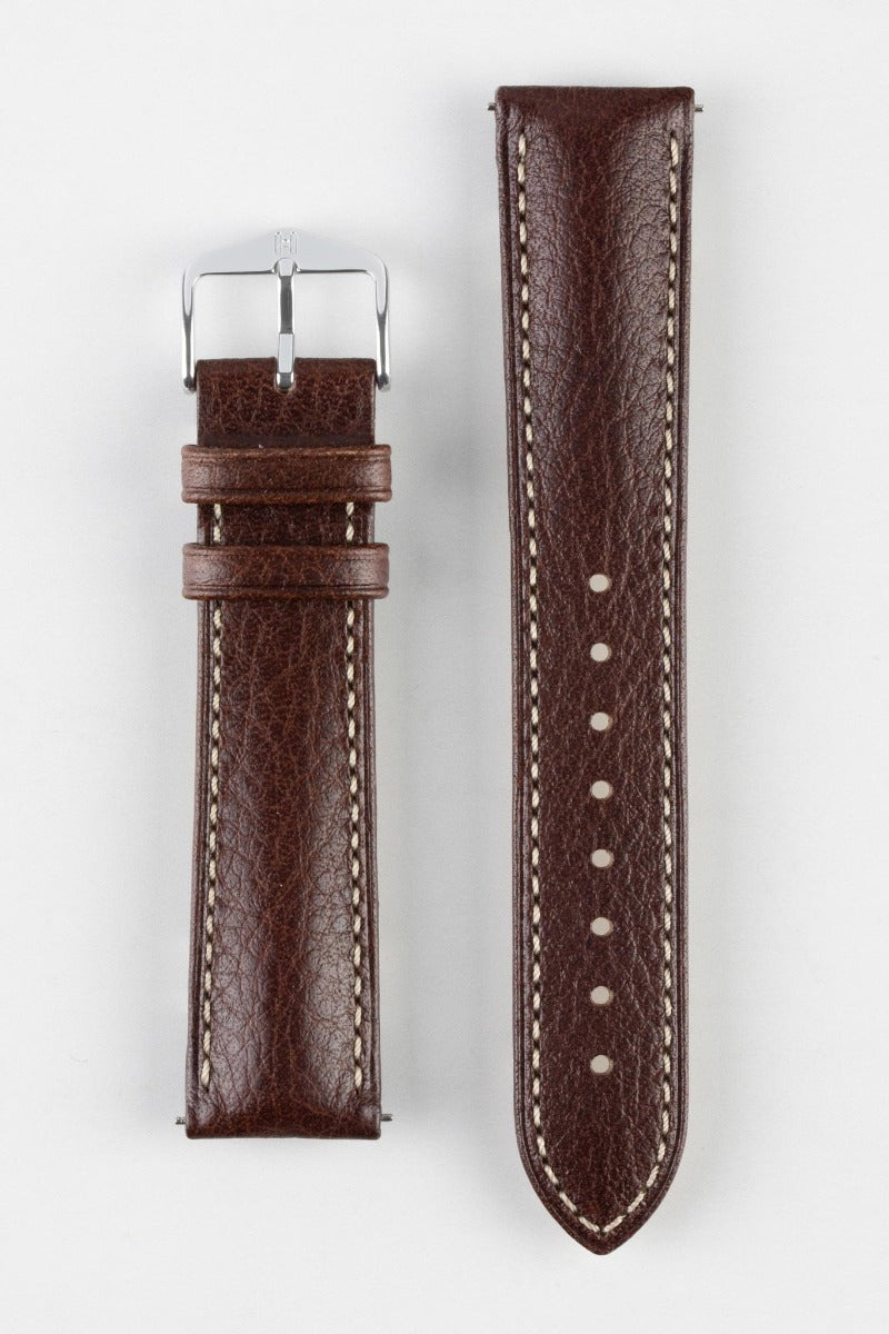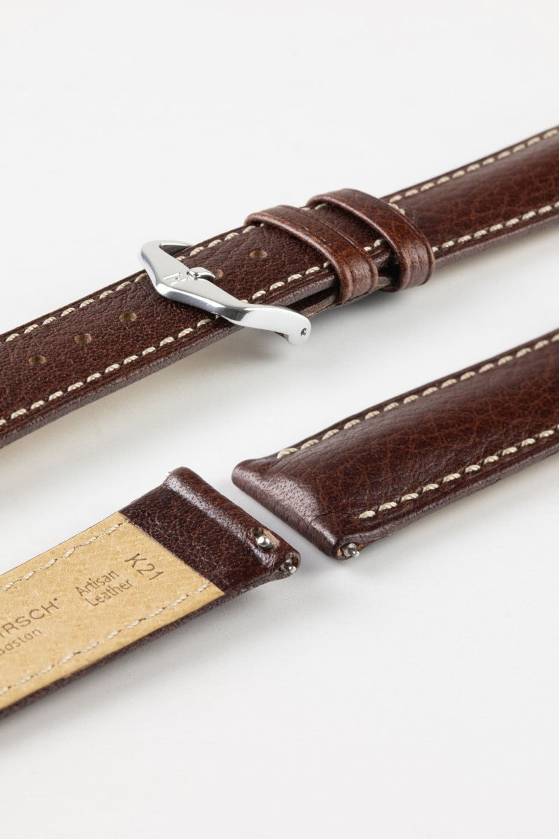 HIRSCH Boston Quick-Release Buffalo Calfskin Leather Strap Brown 22mm Silver Buckle | 01302110-22-SB