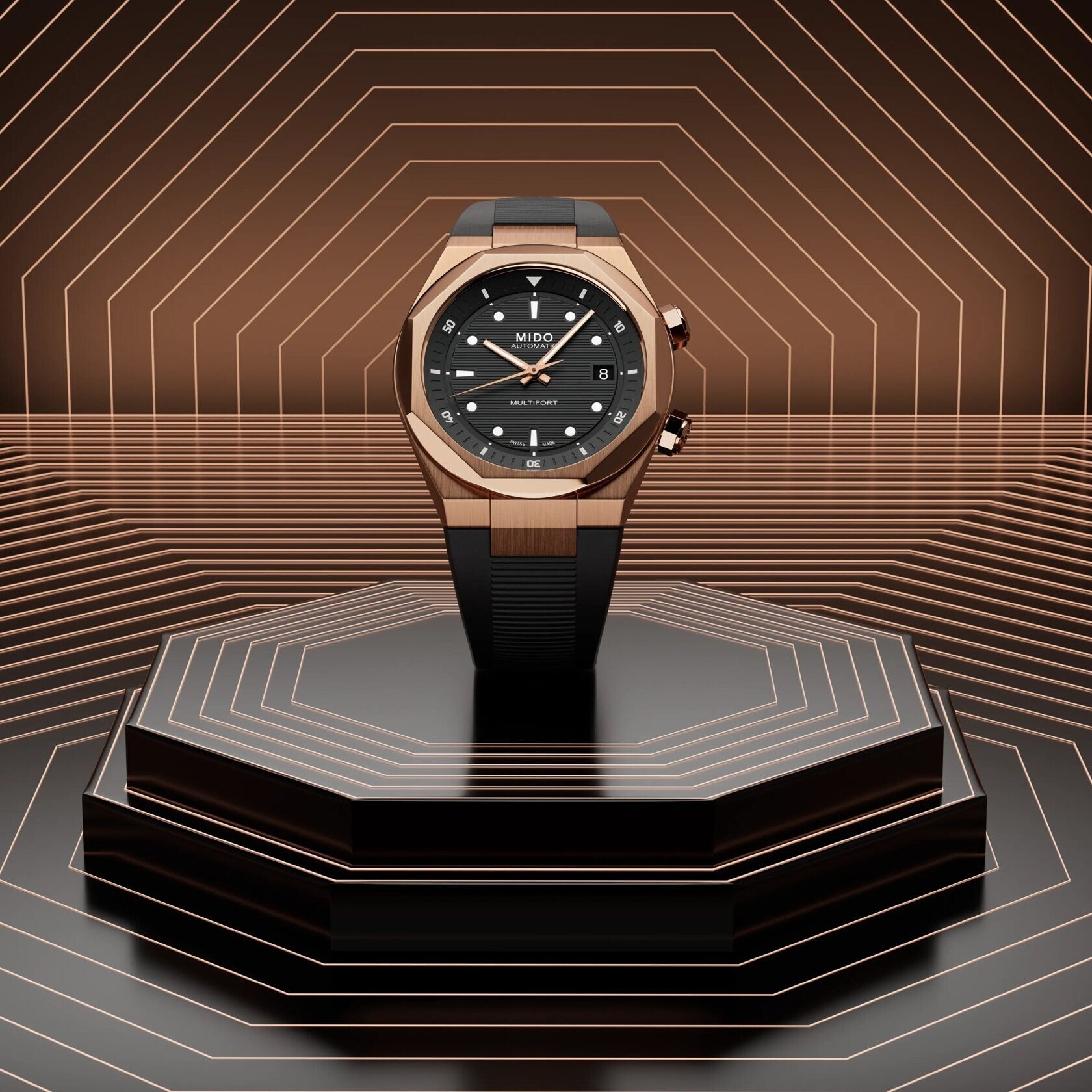 The Audacity of the Multifort 8 Two Crowns changes the game ! This visionary model with its octagonal bezel, is emphasised by a horizontal relief stamped dial while white Super-LumiNova® enhances the visibility of the indexes.