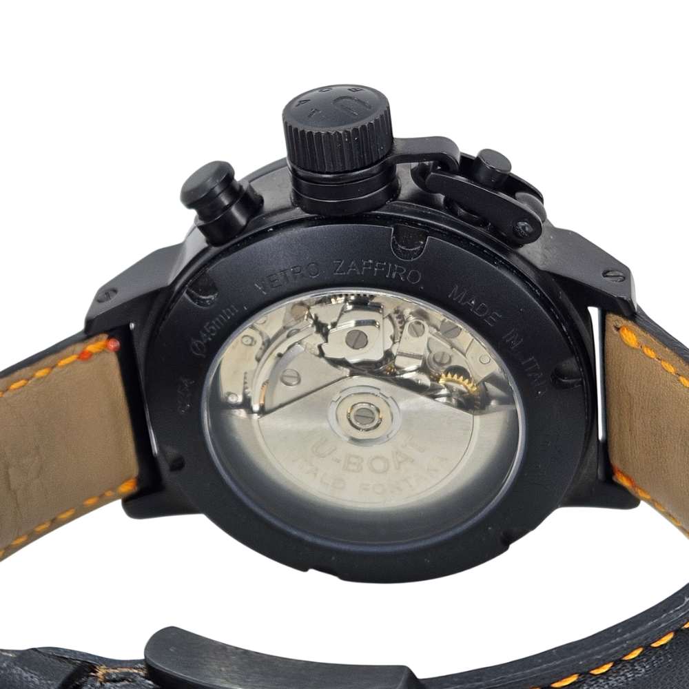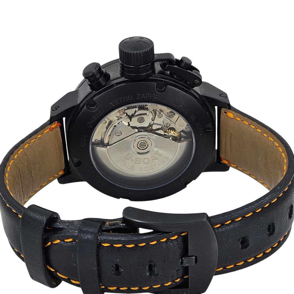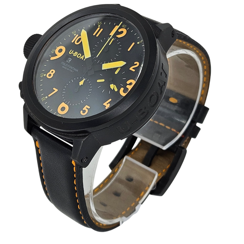 One of the most identifiable U-BOAT watches in the entire collection, the CAB O is a high contrast, diving watch that remains readable in all conditions. The stunning orange glow is unique to U-BOAT and encased in a black PVD case, this U-BOAT is your most valuable time partner.