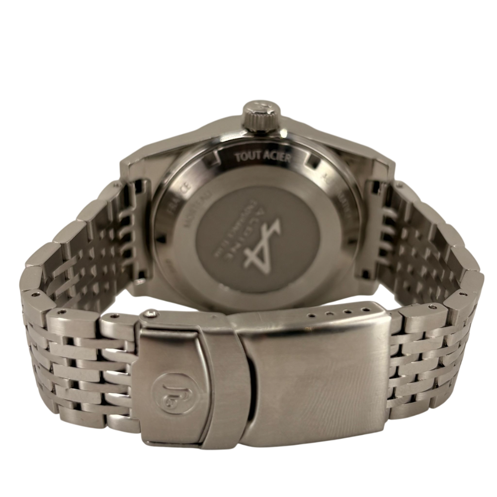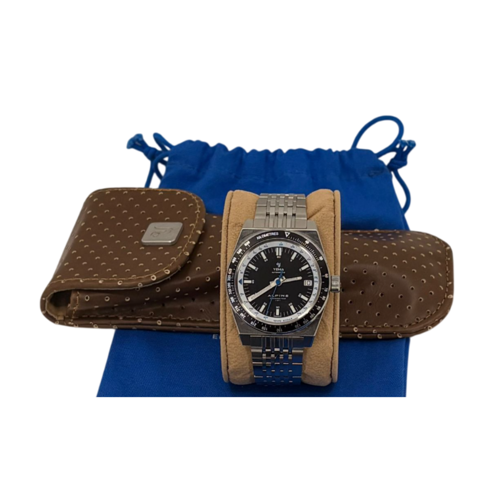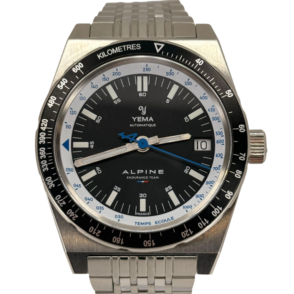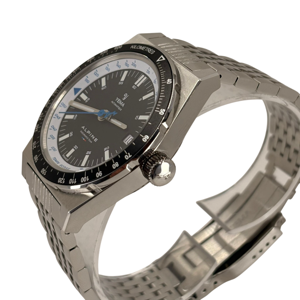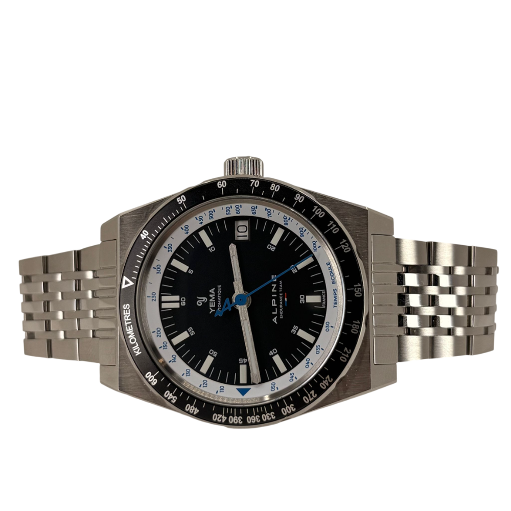 The Rallygraf Alpine Endurance Team YRAL23ALP-AMS motorsports watch is the result of a collaboration between the Yema brand and the French ALPINE Endurance Team. The premium quality is due to the use of high-quality materials - silver 316L stainless steel and sapphire glass. The design of the black dial, including the layout of functions and the appearance of the hands with Super-LumiNova compound, is reminiscent of the retro style of racing cars from the 1980s. From the dial and bezel, you can read data on the average speed, the time of the distance covered and the specific day of the month. The proprietary YEMA2000 automatic movement with a 42-hour power reserve is responsible for the operation.